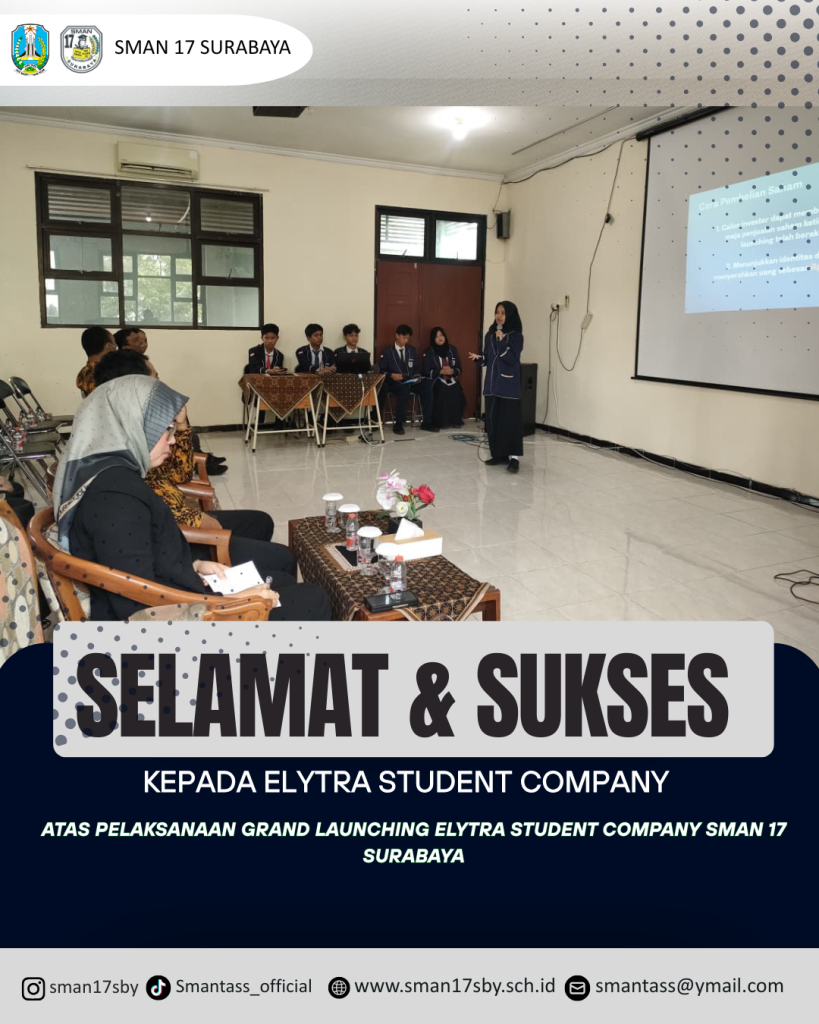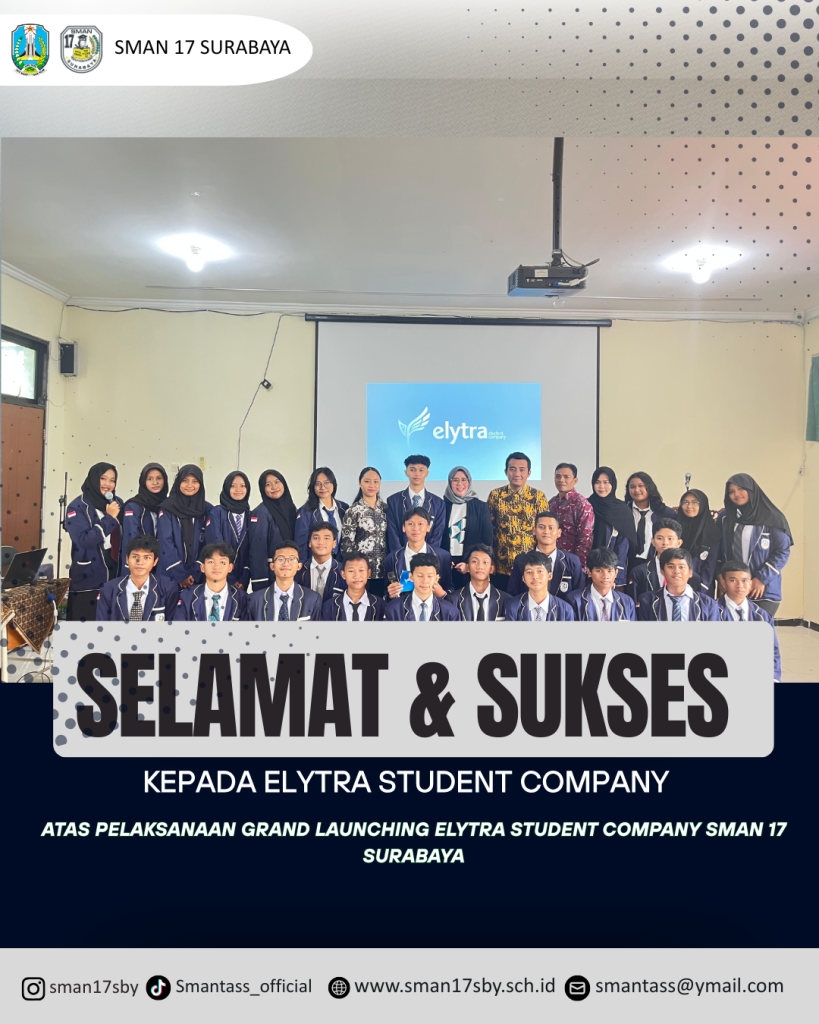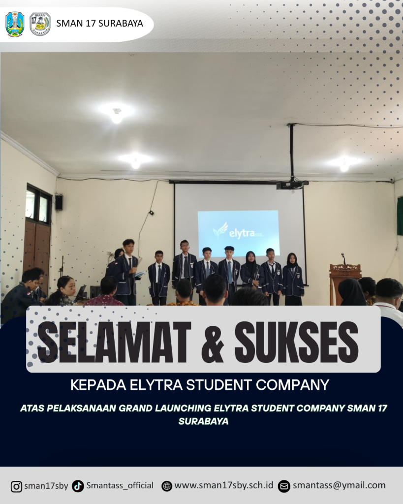 selamat dan sukses atas terselenggaranya Grand Launching Elytra Student Company menjadi wadah bagi siswa untuk berinovasi, berkreasi dan mengembangkan jiwa kewirausahaan, kepemimpinan, serta kerja sama tim. terus melangkah maju, berani berkarya dan menginspirasi